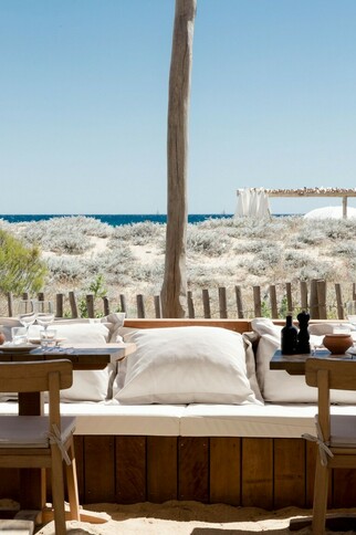 What if we were to replay Lawrence of Arabia at Indie Beach? To tackle this new era among the dunes, the young and windy beach of Pampelonne is adopting a "nomadic" spirit. Within its dashing wooden infrastructures decorated with lime in shades of grey, beige and brown, the dynamic and attentive staff will share a cuisine centred on tapas from the south of the Mediterranean served in hollowed out wooden plates, and also resolutely turned towards the grill with beautiful pieces in the meat and fish sections. A terrace and a beautiful bar area will be the occasion for a nice reunion.