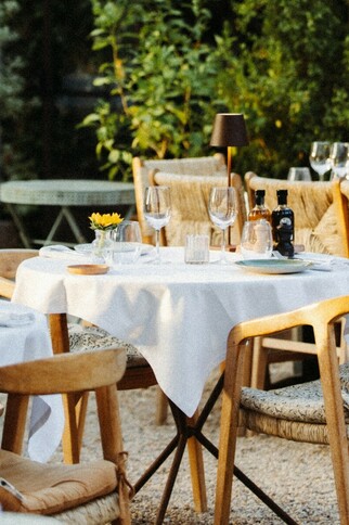 Refined, convivial Provencal cuisine served in the garden, around the pétanque court and fountain.