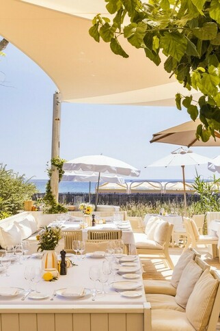 Together, they love to bask in the sun on the beach, indulge in sea bathing, sit down for a late lunch, indulge in a siesta in the shade of the sails, and come alive to the sound of music and festivities for the aperitivo at sunset. In terms of architecture, the emphasis is on naturalness and simplicity: whitewashed wooden cladding in the style of a fisherman's cottage, boat sails for shade, comfortable deckchairs for lounging...