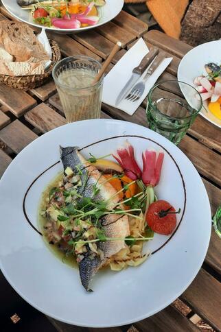 In this unique, tranquil setting, on a terrace in the heart of the garden, Chef Tom Ortin proposes Mediterranean dishes with a twist, and also takes you on a journey with dishes with accents from here and elsewhere."Elsewhere" refers to the regions of the world whose landscapes you'll discover as you stroll through this property protected by the Conservatoire du Littoral.