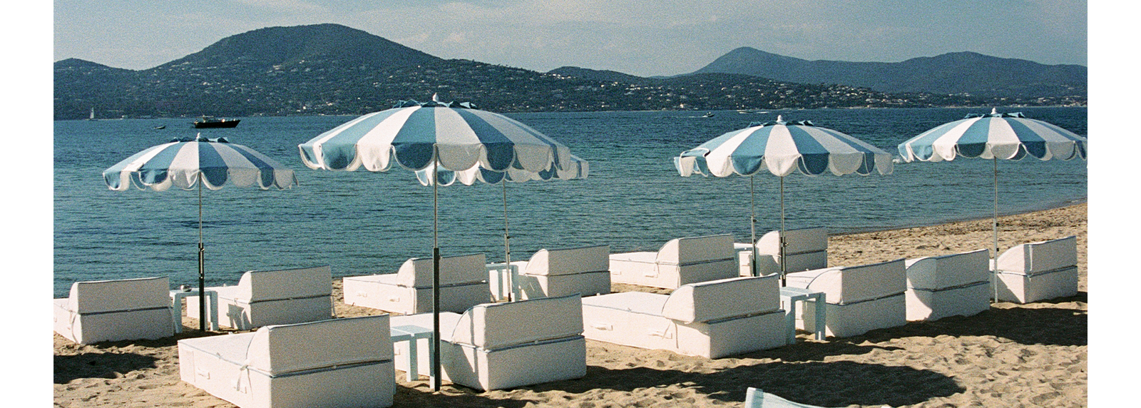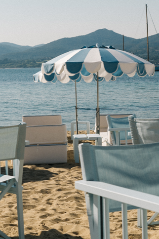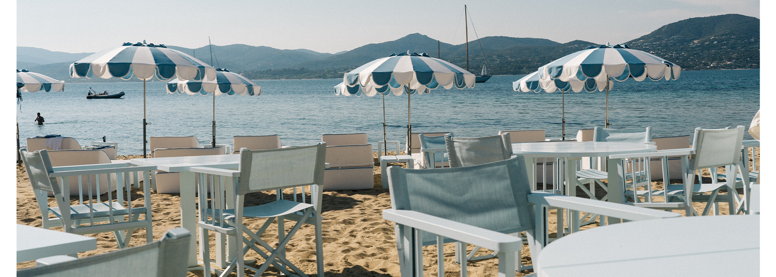 At the entrance to Saint-Tropez, the blue & white parasols of La Bouillabaisse set the scene.