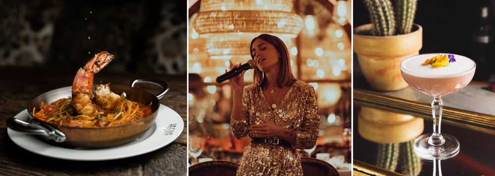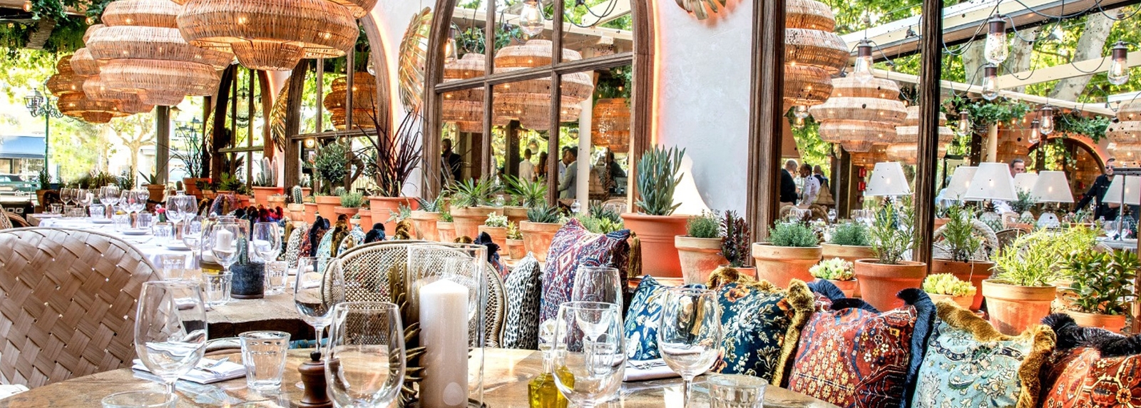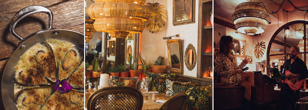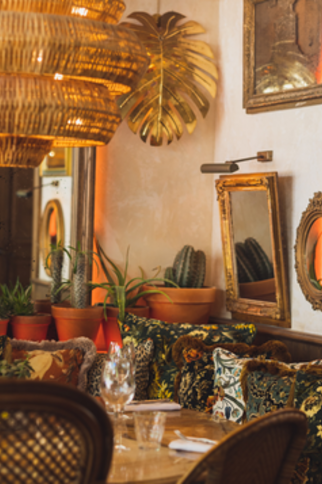 The charming tree-lined terrace welcomes you for lunch and dinner, lulled by the cicadas as you watch the pétanque players. Inside, the lush, authentic decor features moiré fabrics with floral prints, patinas and wood. From midday to midnight, the menu offers a host of Provencal-style dishes. And when night falls, it's time for a piano-bar atmosphere and French variété́.