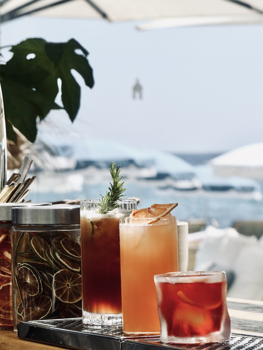There are two distinct locations to enjoy delicious cocktails in a friendly and celebratory setting. The rooftop 'Sun Bar' offers panoramic views, while the downstairs 'Beach Bar' and its barmen craft inventive, gourmet combinations.