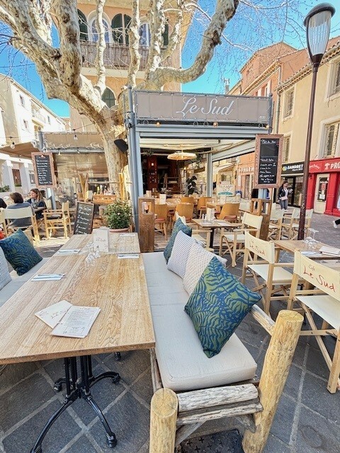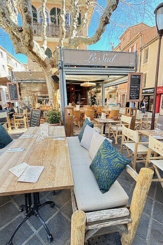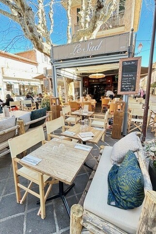 All'ombra dei platani, Le Sud vi propone ogni giorno in servizio continuo la sua carta di piatti fatti in casa, dalla colazione alla cena, in questo caffè-brasserie molto frequentato dai clienti abituali iniziati.