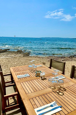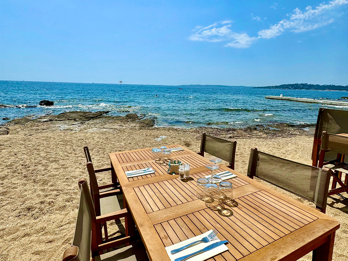 Savour lunch or dinner in a welcoming, cosy setting on our stunning terrace or while relaxing with your feet in the sand. In the Golfe de Saint-Tropez, a comfortable and tranquil setting awaits you while you enjoy a delightful moment beneath the sun of Sainte-Maxime.