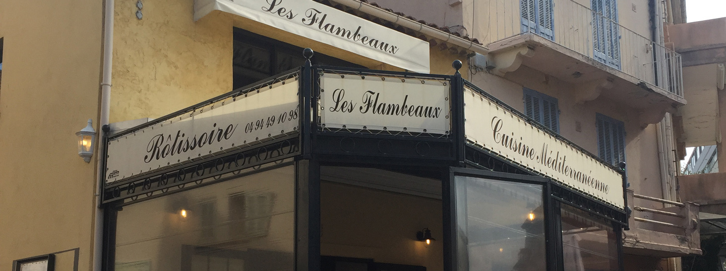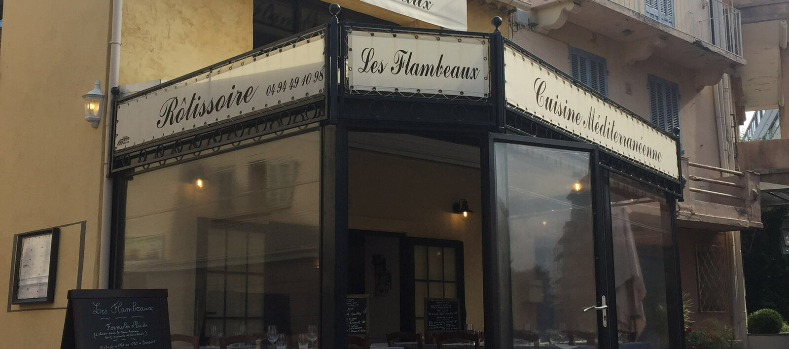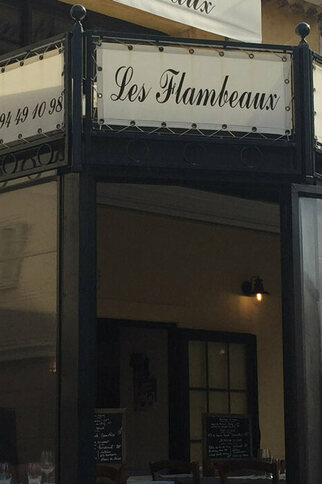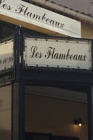 Across from the church in the ancient town center stands Les Flambeaux. Specialties including prawn tails, locally caught seafood, and rotisserie-cooked beef and game are available.