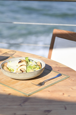 The Chef will provide you with an elegant and delicious lunch, combining the flavours and aromas of the area with his specialities of grilled food, rotisserie dishes and seafood. Savour the day's delicacies before relaxing on a beachside mattress. Later in the evening, enjoy a drink while watching the sunset projected onto the bar.