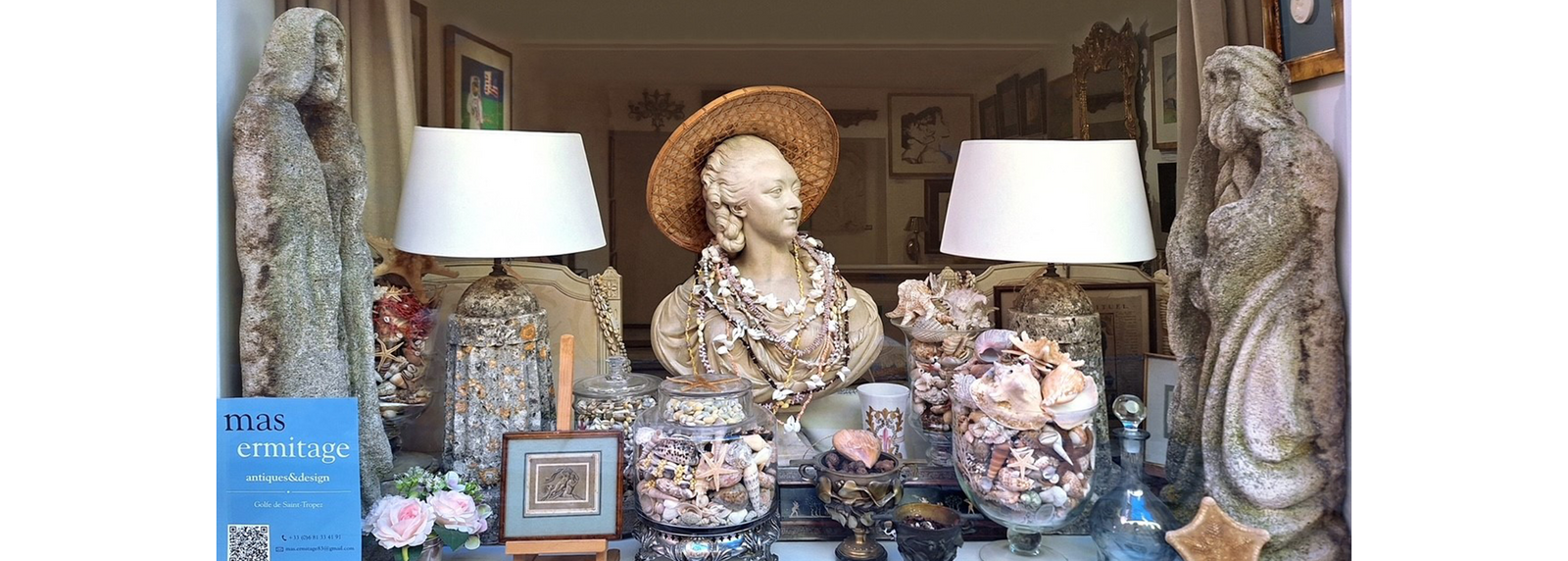 The "mas ermitage antiques&design" gallery is located in Saint-Tropez, at the foot of the church tower.