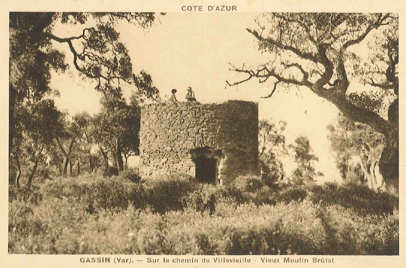 At the beginning of the 19th century, the millstones used were manufactured far from the Gulf of Saint-Tropez and arrived via Marseille. There were then three windmills in operation at Gassin, owned by Mademoiselle Castelanne for one and by Messrs Garachon and Meyriès for the other two. The latter was also the owner of one of the town's three water mills located on the Bourrian. These water mills only operated for a few months a year when this river was heavily supplied by the rains.