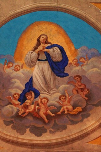 Internally the church consists of a single nave and a flat apse choir decorated in XVIII of murals depicting the Assumption surrounded by the four evangelists. It is illuminated by two side windows and a stained glass window dedicated to 3rd St Andrew, patron of the village, located above the front door.