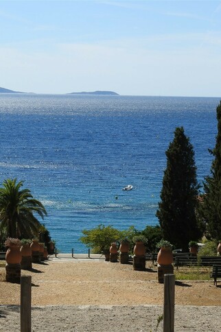The Jean Aicard square, still existing, planted with cork oak, heather, pines, mimosas offers a shady stop as well as a beautiful perspective. It overlooks the Degrés de la Mer, stairs decorated with white roses, which majestically lead the walker to the beach.