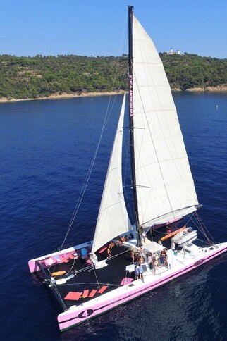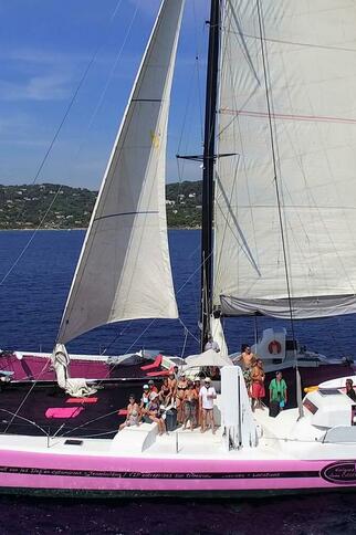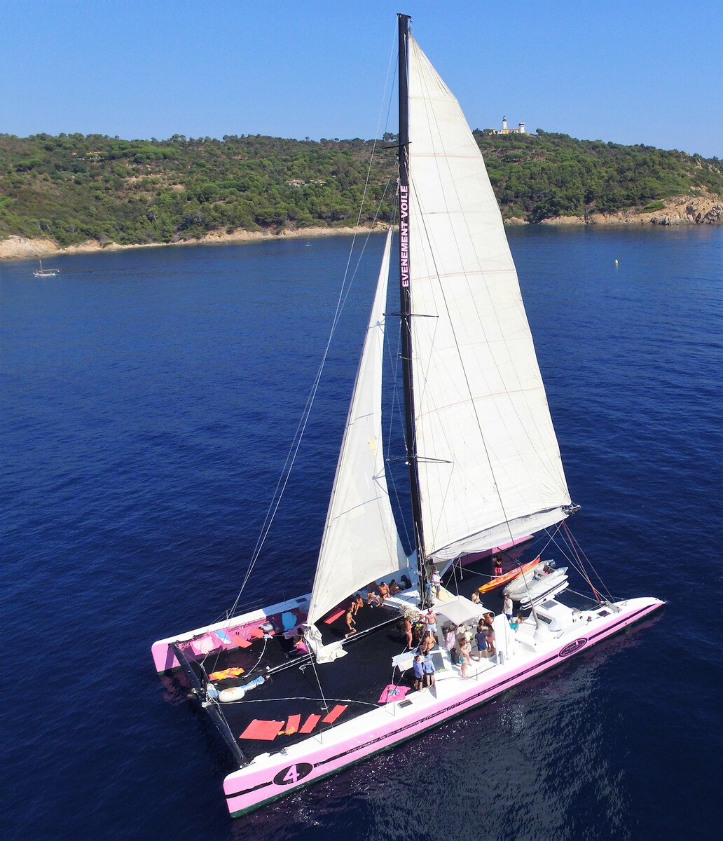 Crewed catamaran rentalDeparture: From the marinas of Cogolin, Saint-Tropez, Sainte-Maxime and Cavalaire, come aboard for a day, a half-day or a magnificent sunset.