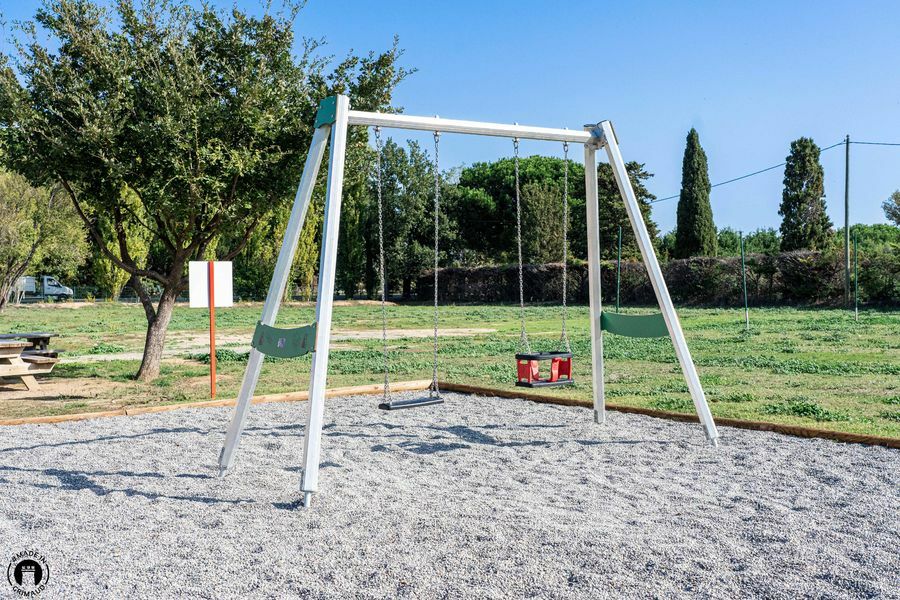 To get to the playground, go through the entrance gate of the Blaquières sports complex and then turn right. You will find parking spaces and then the playground next to the tennis courts.A swing for babies and children as well as a spider are waiting for your children to have fun!