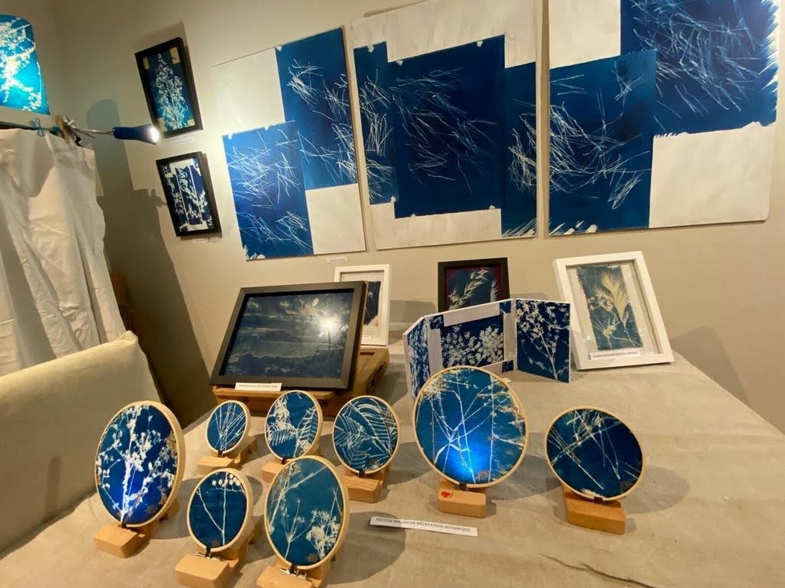 Les mille nuances du bleu, the workshop was born in Ramatuelle to practice the "Cyanotype", an applied art technique that uses sunlight to reveal vegetal and photographic compositions.