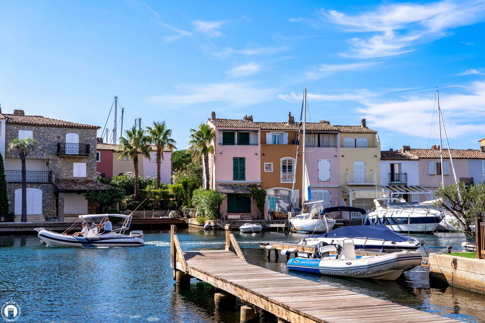 When you get to the Port Grimaud roundabout, leave the track and take Avenue de la Mer until you reach the entrance to Port Grimaud.