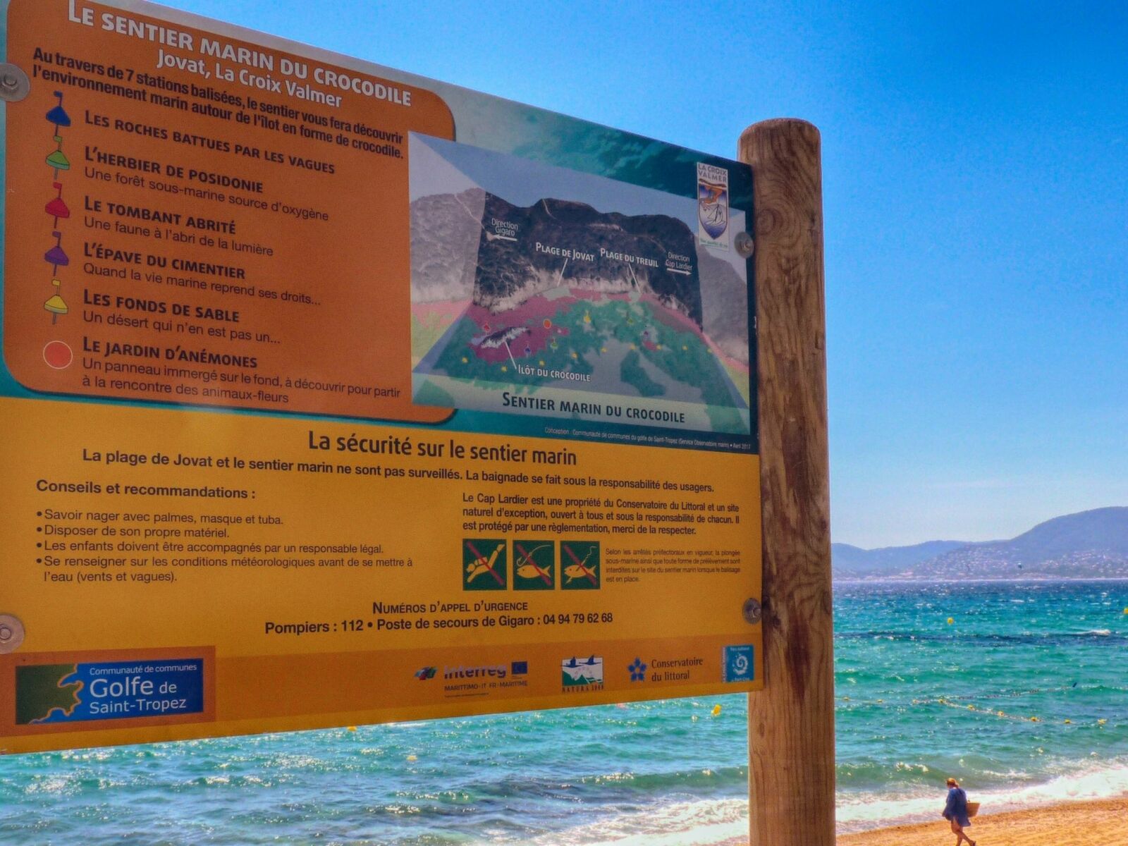 Located on the Var coastline, at the heart of untamed Domaine du Cap Lardier, the path is equipped with buoys and underwater information panelsDeparture form Plage de Jovat, maximum depth 3 m, the site allows you to discover a shipwreck and its bags of ciment .