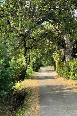 Follow the vines on your left. At the crow's feet, take the green lane on your left. Cross the stream on your left, then take the path on your right between the vines. Cross the other stream and take the track in front of you.