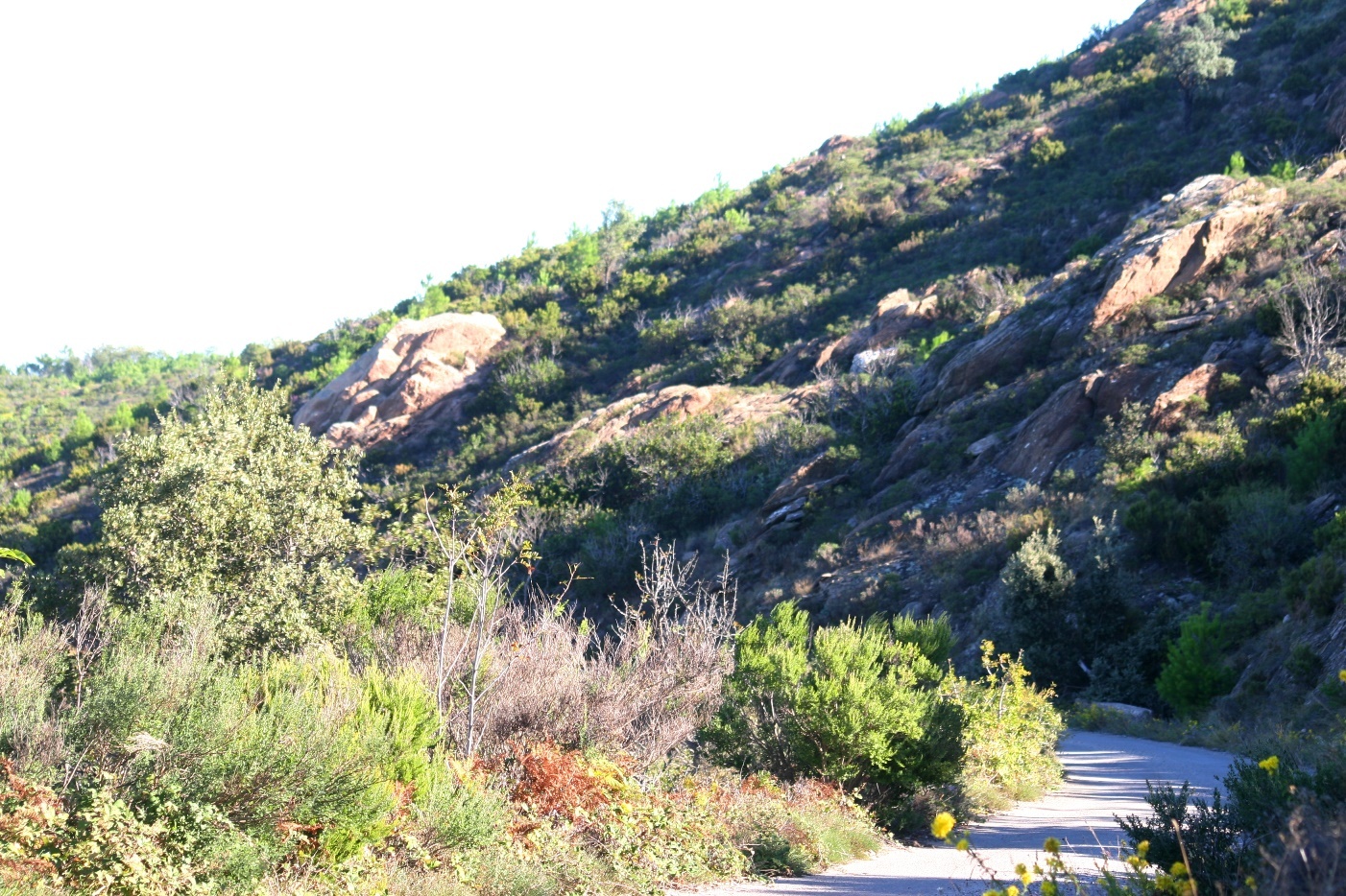 You reach a flat area (antenna). Go towards the small building and follow the path for about 550 m. You reach the highest point of La Garde-Freinet: Les Roches Blanches (637 m), a quartz vein.