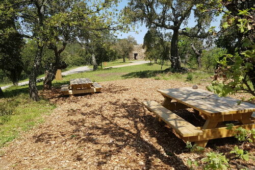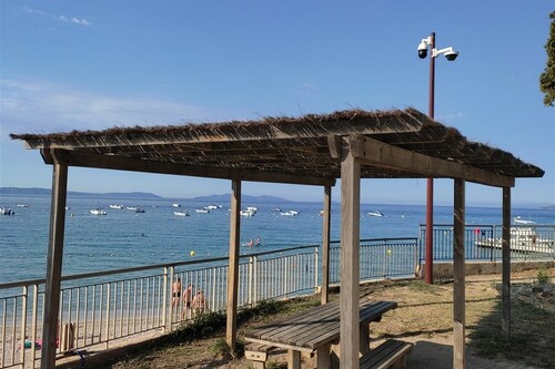 Picnic area near the beach Rayol Est facing the sea and the golden islands...two tables and benches.
