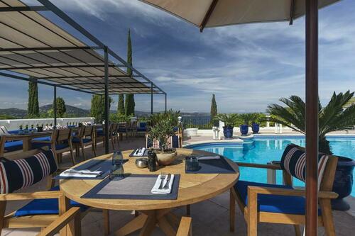 On Pramousquier beach, facing the Golden Isles, MIRAGES à la plage welcomes you for lunch or dinner. At the table and on our deckchairs, you'll discover seasonal Mediterranean cuisine, accompanied by Domaine Clos Mirages wines.