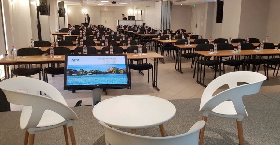 - Fully-equipped room available from 2pm to 6pm (wifi, screen, video projector, clickshare, HDMI, sound system, flipchart, notepads, pens)