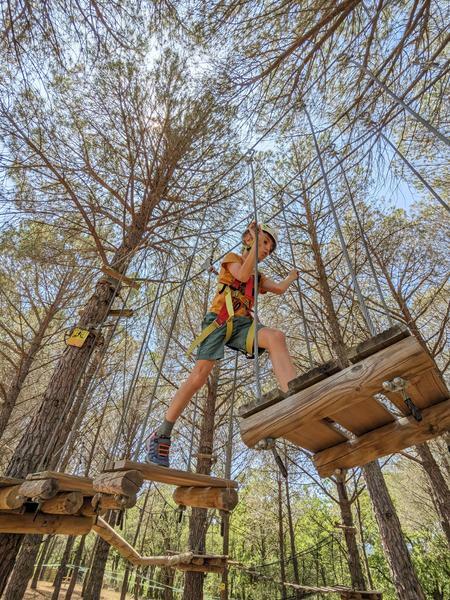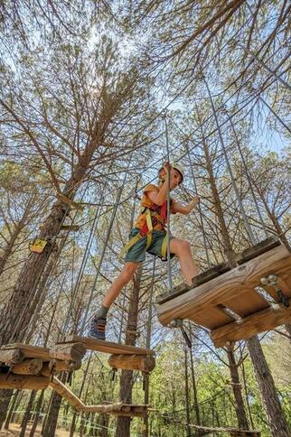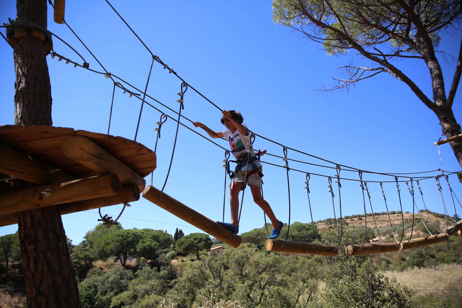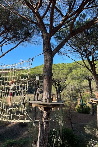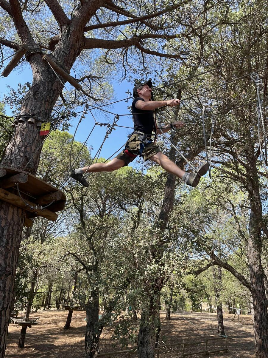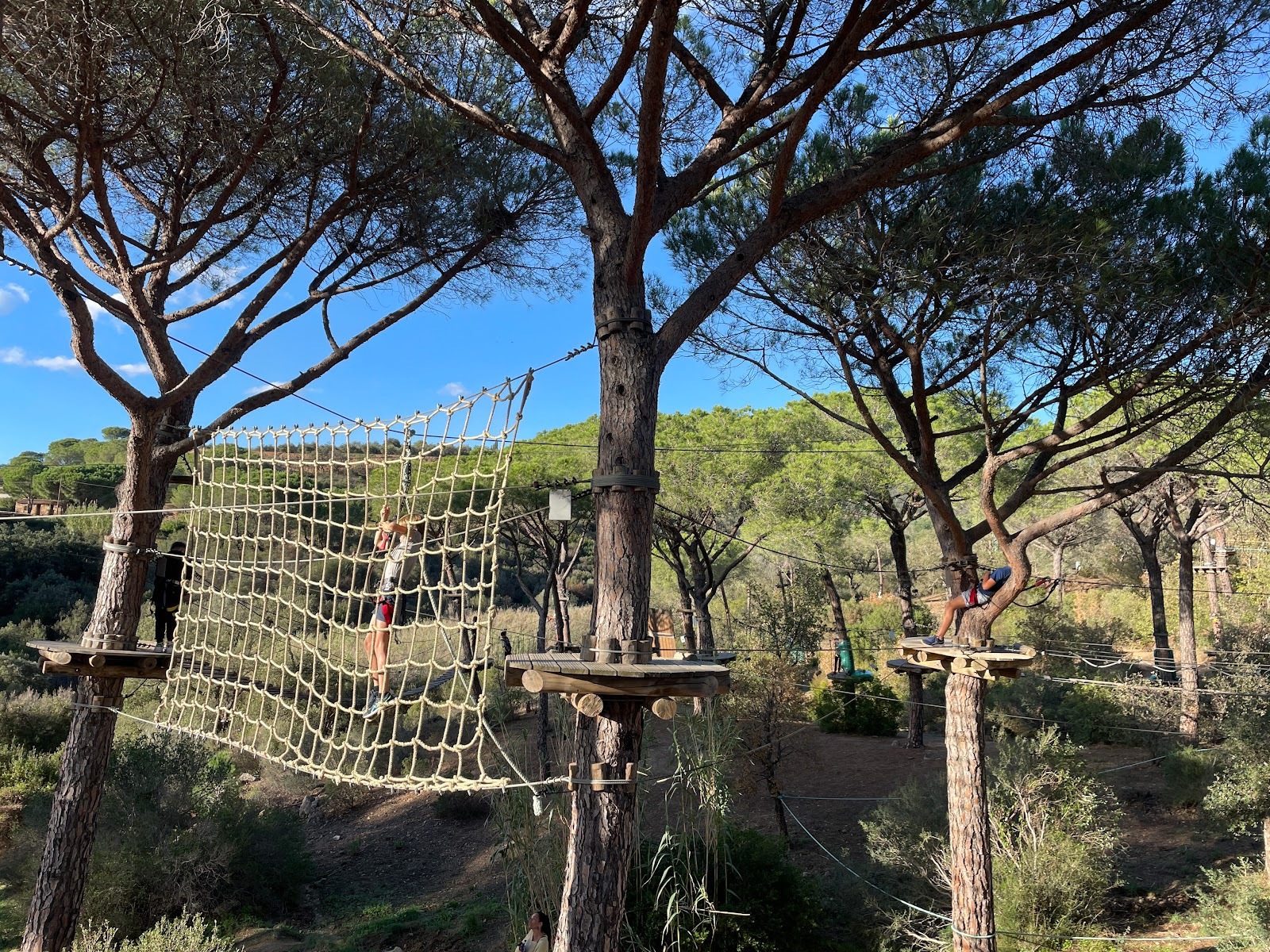 Over fifty square meters of nets, ranging in height from three to eight meters, are strung in the trees, creating enormous trampolines!