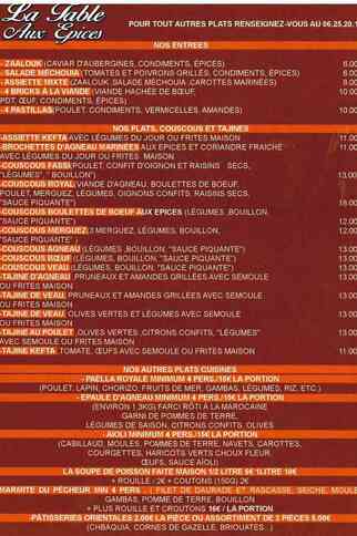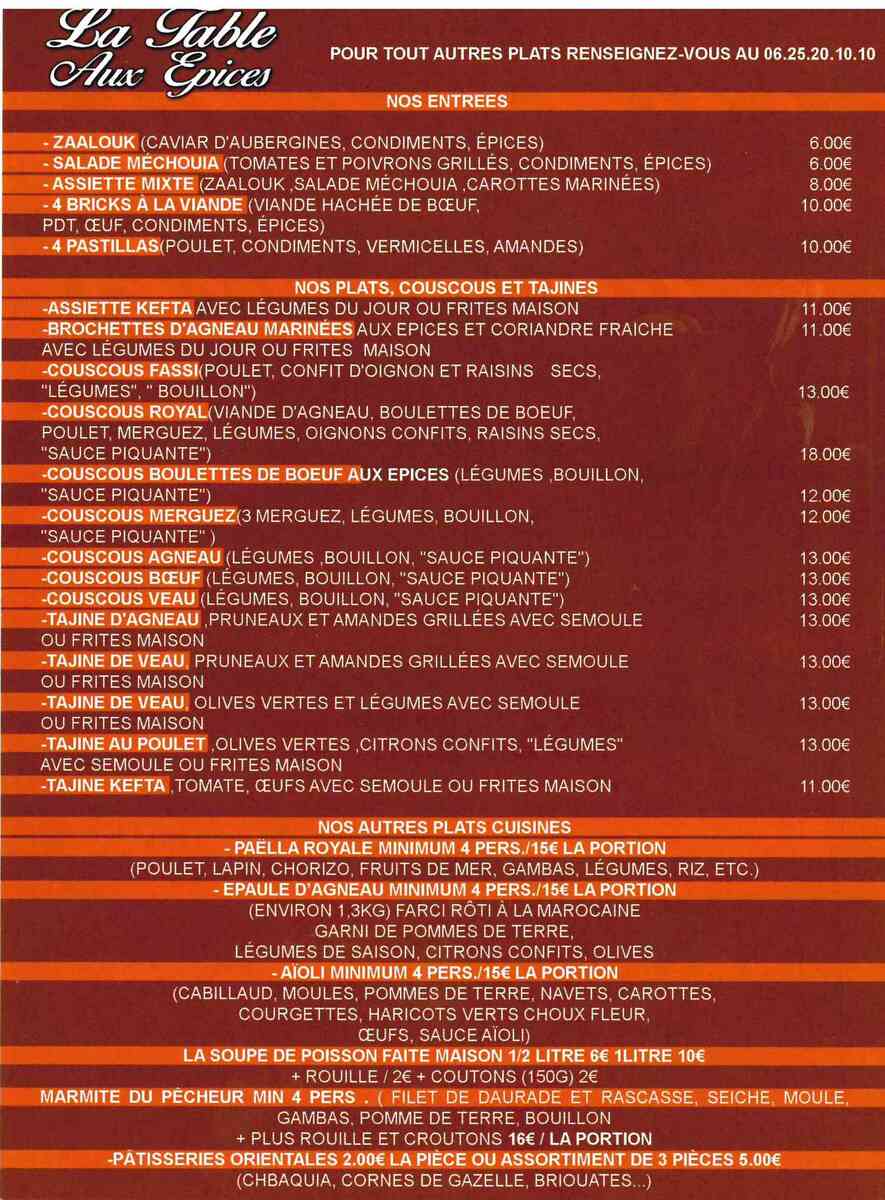 La Table aux épices offers you oriental specialities and many other cooked dishes.