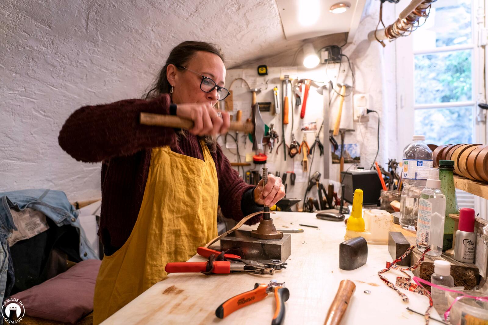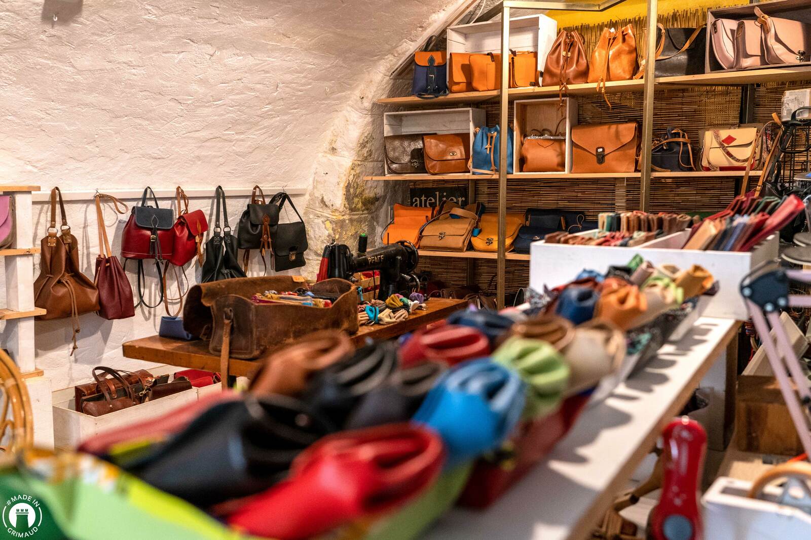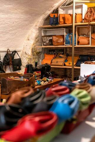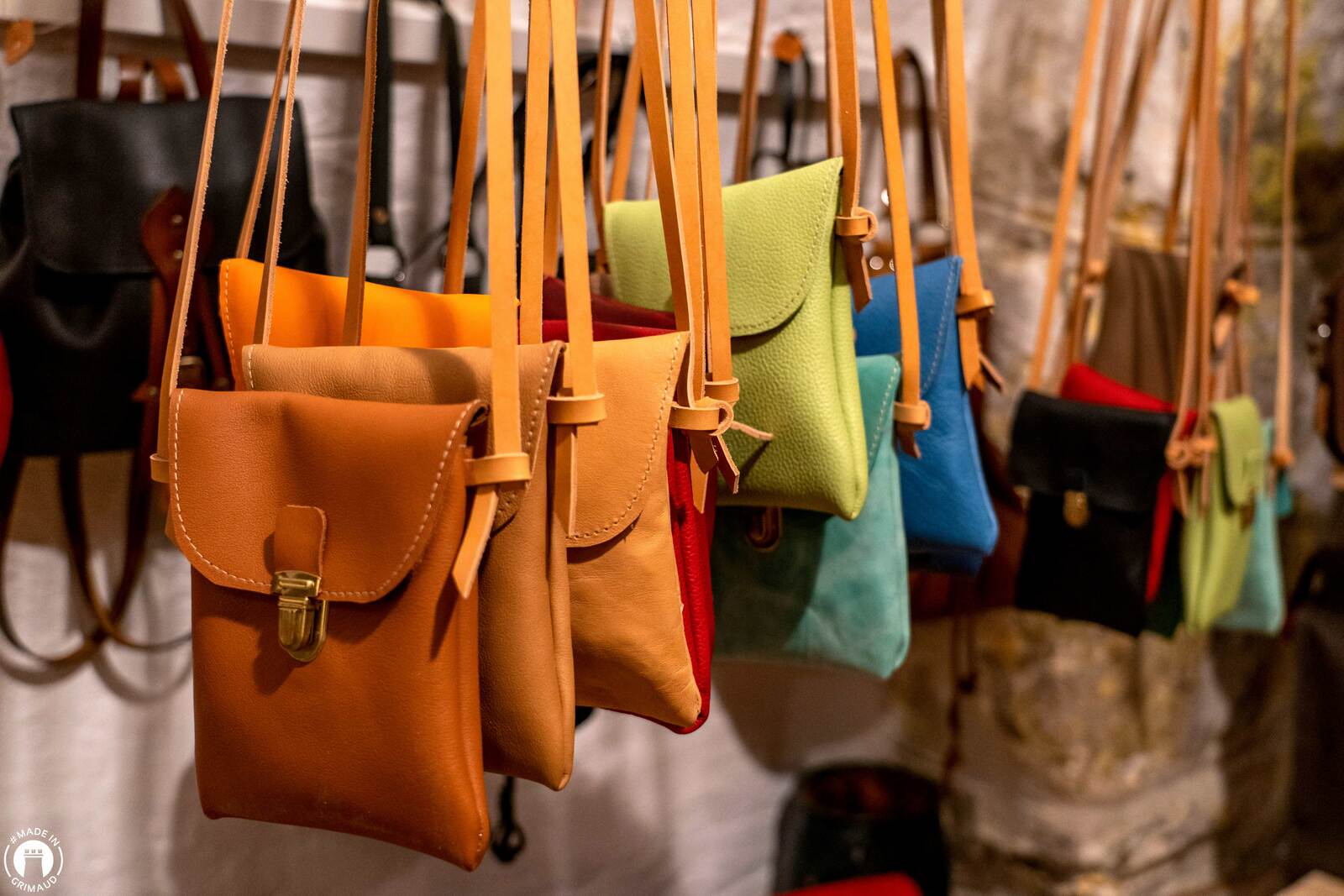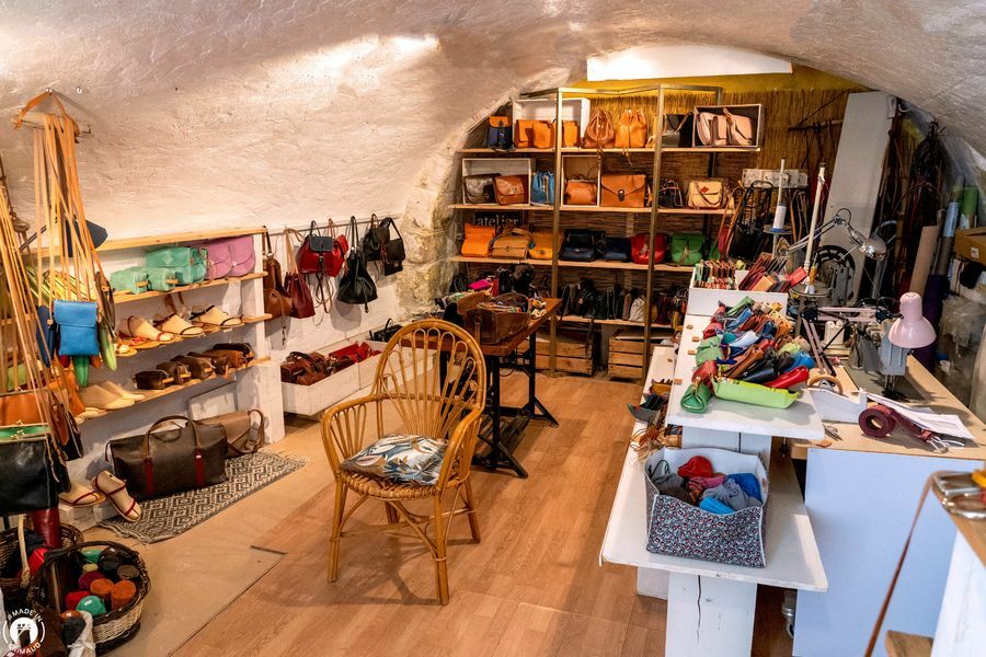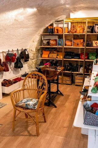 In the heart of the medieval village of Grimaud, local handmade leather goods.