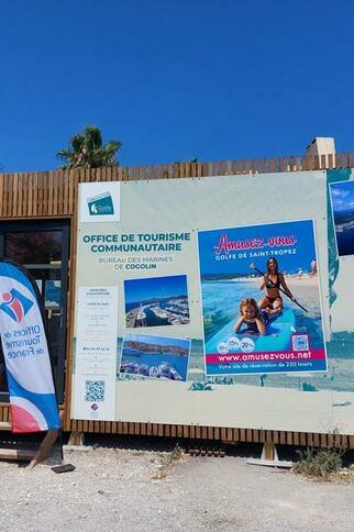 A waterfront tourist office welcomes you to Les Marines de Cogolin from July 01 to August 31. Just 20 meters from the beach, it's the ideal stop-off point before you set off in search of exciting activities, sports or water sports, or simply to find a corner of paradise, an unusual address, a romantic evening...