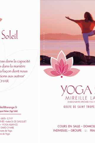 Reservations required. Please contact me on 06.11.52.64.66 or yoga.soleil@orange.fr