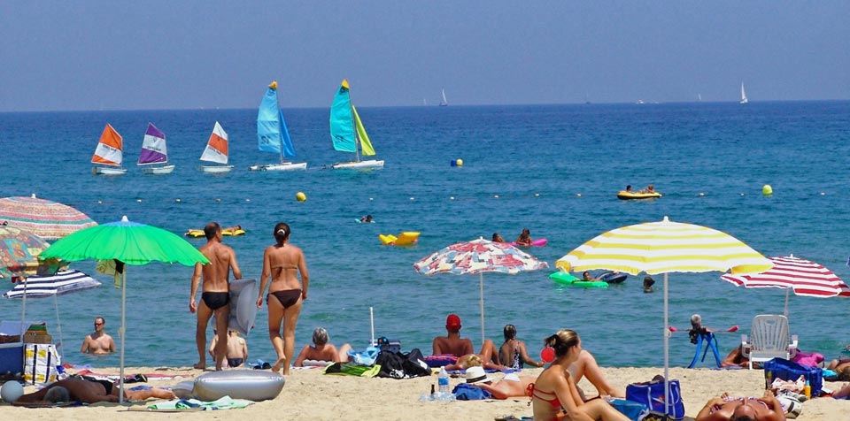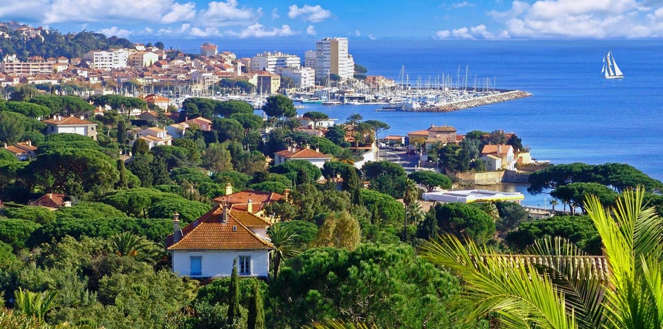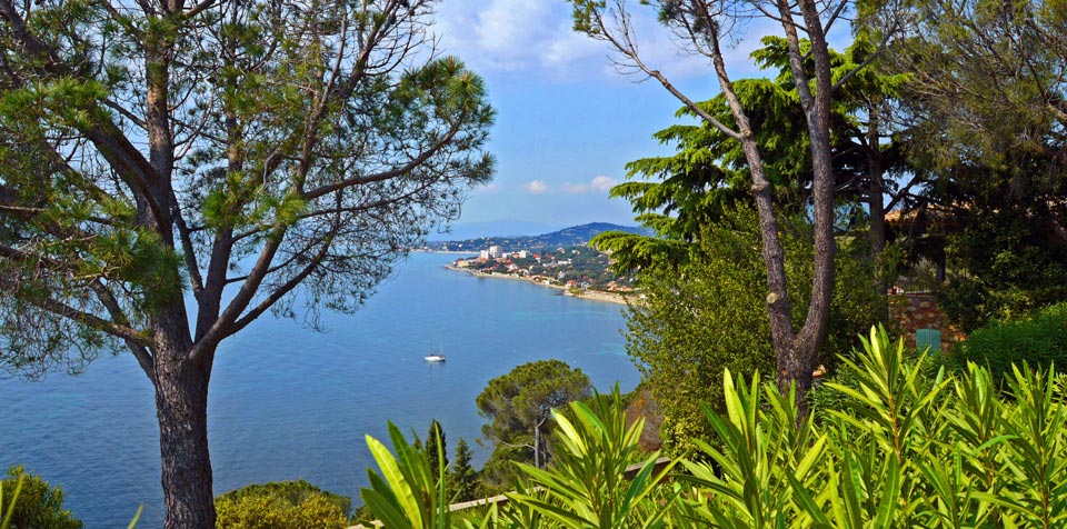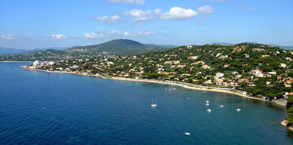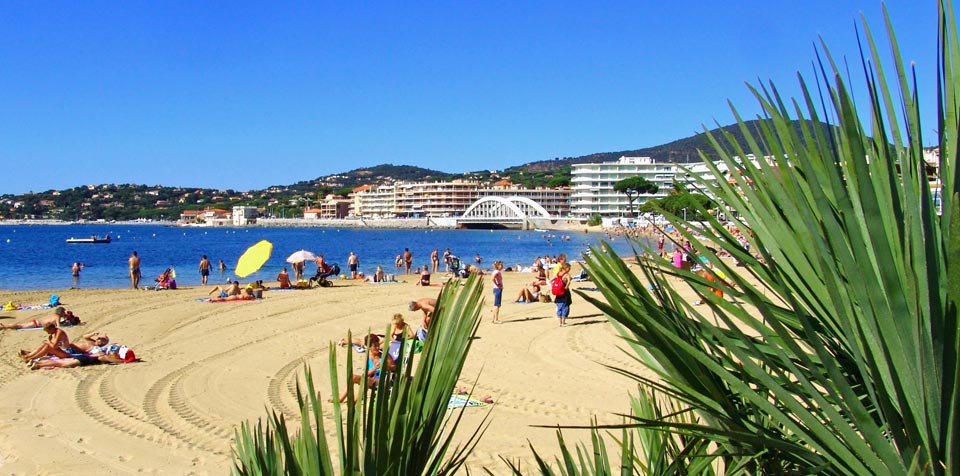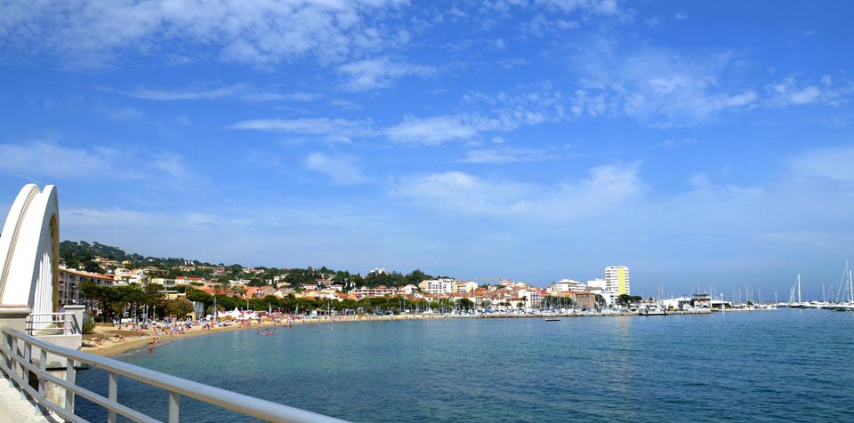 Sea, boats & sun… If you come from Issambres, you will not want to tear your eyes away from the vast blue stretch of water ahead. The waves break first on a rugged coastline, before reaching the beautiful sandy beach of Nartelle, popular with fans of watersports and swimming. At the far end lies Pointe des Sardinaux, a protected nature area facing a beacon out at sea and a well-known site for scuba diving. The three bends which follow symbolise the idealised image we have of the Côte d’Azur: lovely parasol pines in harmony with the coast road; a few hundred metres further on the marina with space for 800 boats, watched over by the church’s clock tower; and the town centre’s beach just a stone’s throw away. Before this, over the landmark bowstring bridge and past the Club Nautique, you will discover all the attractions of the Croisette beach: to port, a carpet of smooth pebbles, to starboard hot sand, and aft diving into turquoise blue water.