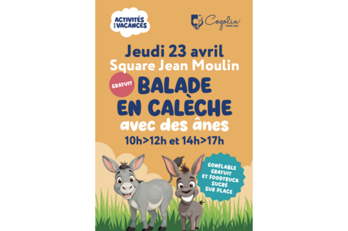"Rendez-vous pour profiter d’une balade en calèche tirée par des ânes ! Un gonflable sera également installé sur place pour le plaisir des enfants.
