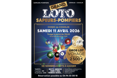 Participez au grand loto des sapeurs-pompiers avec de nombreux lots à gagner, dont un gros lot voyage d'une valeur de 2500€.