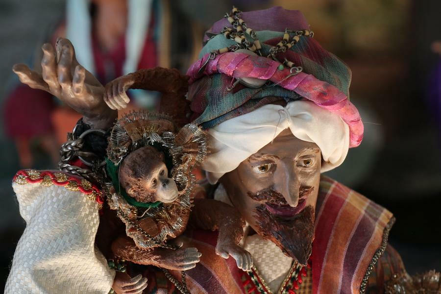À l’orée du XVIIe siècle, relevant de la plus haute fantaisie, la tradition du « presepe » s’installe véritablement à Naples. L’action première de ce cheminement fut de positionner l’émergence du christianisme sur des ruines antiques. Les Rois Mages et leur suite composée de courtisans et d’esclaves sont la particularité des crèches napolitaines.