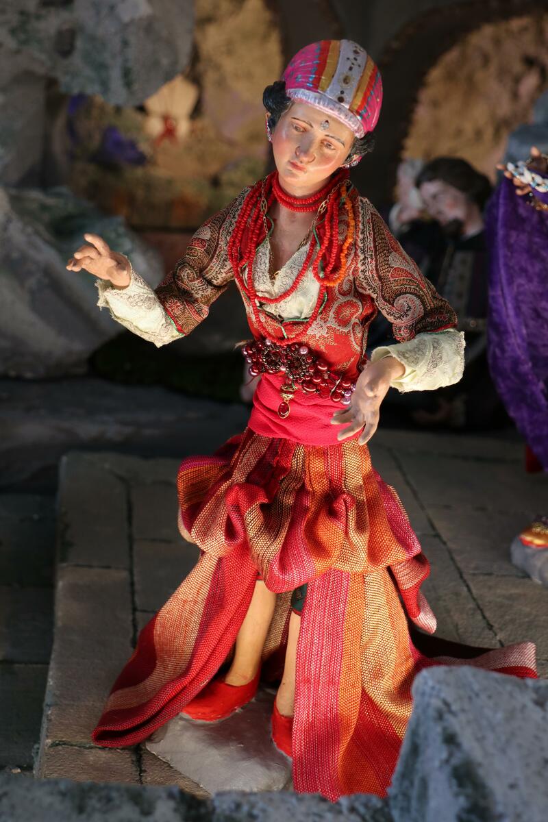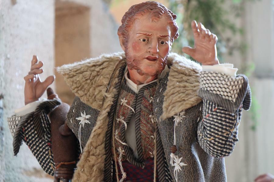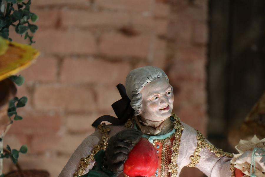 La crèche napolitaine (presebbio napulitano), est une tradition artisanale qui s’est affirmée à la fin du XVIe siècle. Elle devient un phénomène de société et connaît son âge d’or au XVIIIe siècle. La théâtralité est la marque de la crèche napolitaine où les éléments sacrés se mêlent au profane avec des personnages de la vie quotidienne.