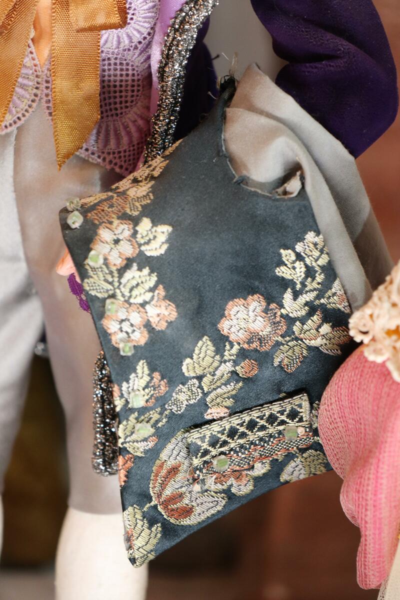 Les habits font l’objet de tout autant de soins de la part de l’artiste. Il utilise des tissus de grande qualité en privilégiant les tissus anciens pour confectionner des vêtements conformes au statut des personnages.
