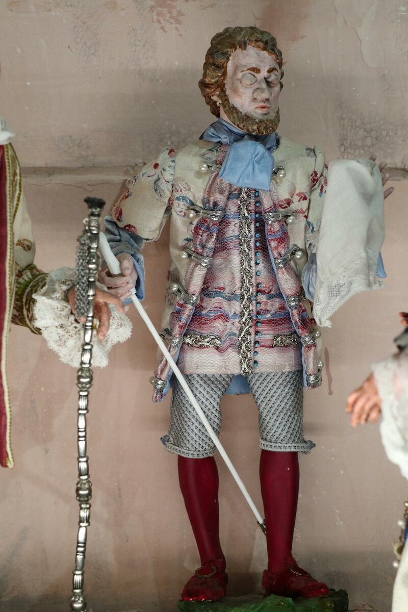 Les santons (pastori) mesurent environ 40 centimètres. L’armature du corps est constituée de fil de fer et d’étoupe avec des membres articulés en bois travaillé. L’ensemble est recouvert par des vêtements variant selon la condition de chacun : pièce de soie chatoyante ornée de galons d’or et de pierres précieuses pour les uns ou simple gilet de peau de mouton pour les autres… Un soin particulier est apporté à ces habits comme à l’expression très réaliste des visages.