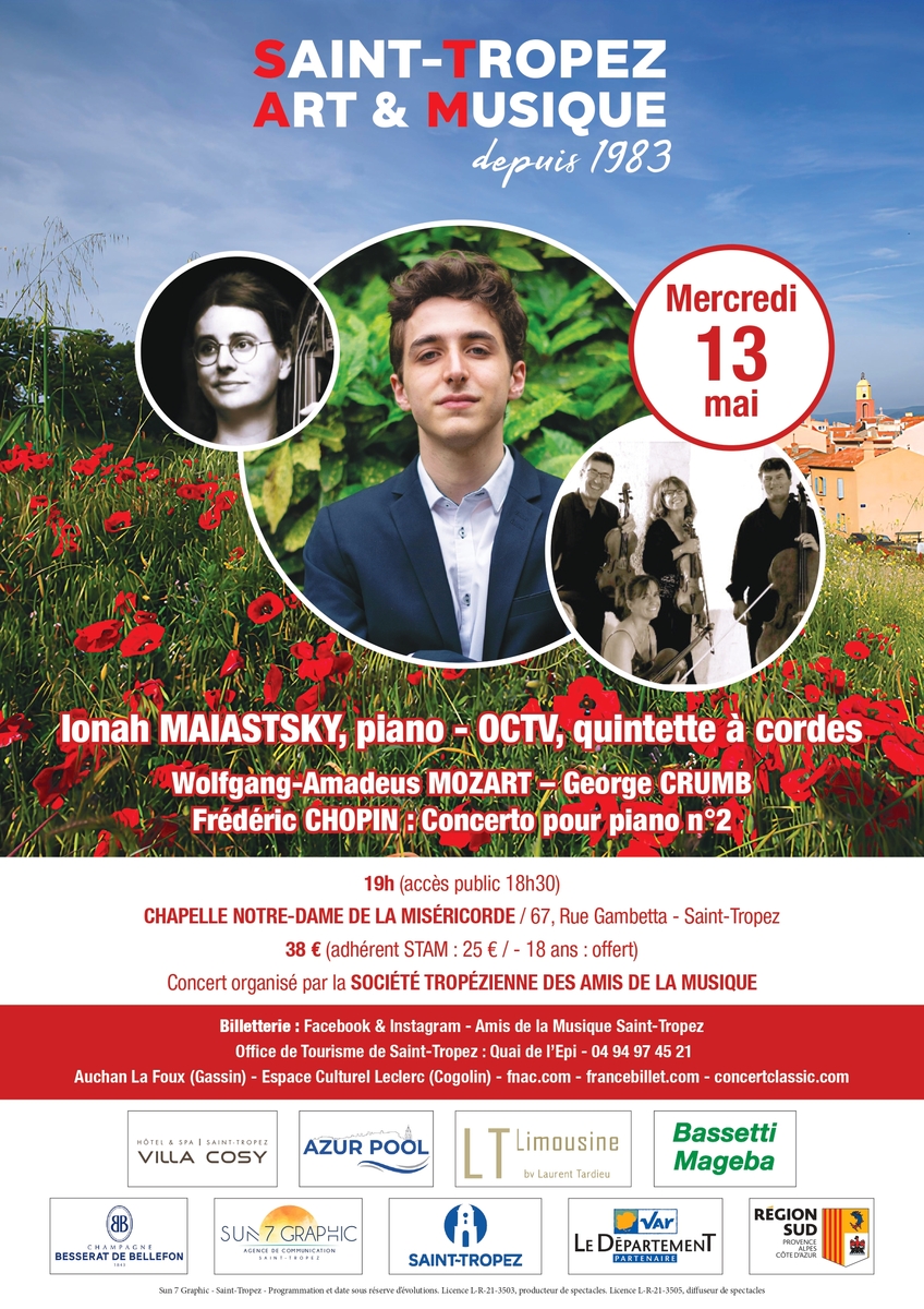 Concert du pianiste Ionah MAIATSKY et de l’Orchestre de Chambre de Toulon-Var (quatuor + contrebasse) qui interpréteront le sublime « Concerto pour piano n°2 » de Frédéric CHOPIN.