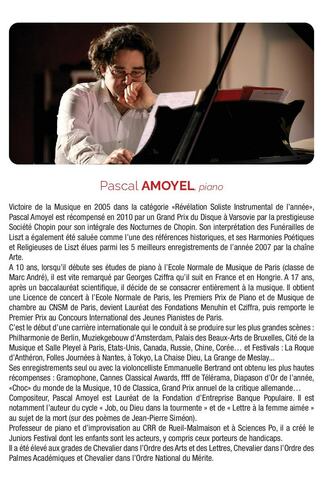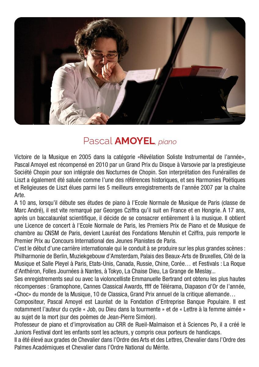 Victoire de la Musique en 2005 dans la catégorie "Révélation Soliste Instrumental de l'année", Pascal Amoyel est récompensé en 2010 par un Grand Prix du Disque à Varsovie par la prestigieuse Société Chopin pour son intégrale des Nocturnes de Chopin. Son interprétation des Funérailles de Liszt a également été saluée comme l’une des références historiques, et ses Harmonies Poétiques et Religieuses de Liszt élues parmi les 5 meilleurs enregistrements de l'année 2007 par la chaîne Arte.