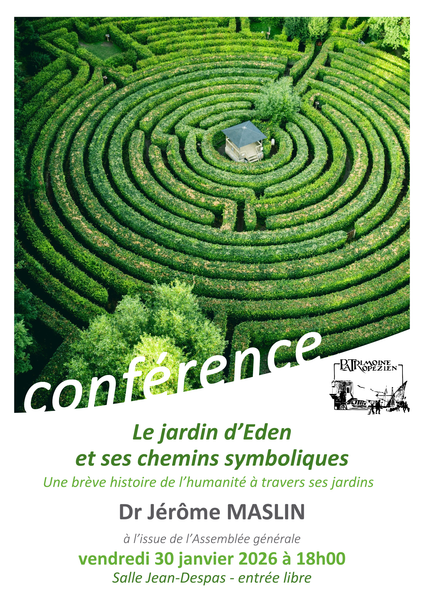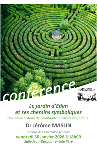 Assemblée générale de l’association, suivie d’une conférence sur « Le jardin d’Eden et ses chemins symboliques ; Une brève histoire de l’humanité à travers ses jardins par le Docteur Jérôme MASLIN