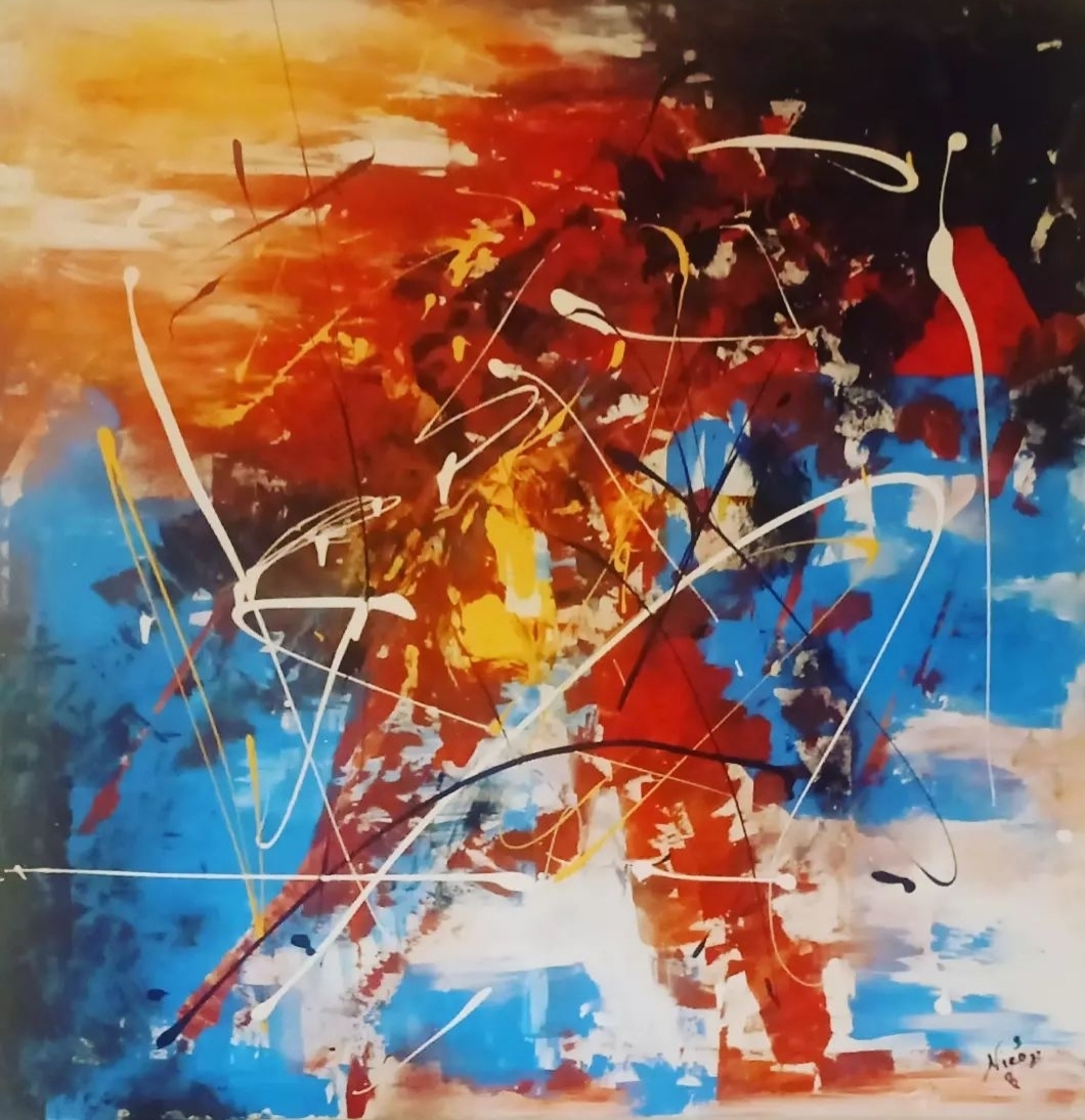 Les œuvres abstraites et contemporaines de l’artiste Nico Biso, s’inscrivent dans le courant qu’on appelle habituellement ¨L’informel¨- c’est-à-dire vers une abstraction extrêmement amorphe et peu structurée, une peinture principalement basée sur l’élément signe. Un signe qui s’identifie à la rapidité d’exécution et à l’impulsion cinétique ; caractéristiques de George Mathieu et Jackson Pollock qui sont à la base de la pensée artistique de Nico. L’artiste demande aux spectateurs un moment d’analyse et de la réflexion pour voir la représentation de l’objet à travers la division de ses tableaux. Il utilise la couleur pressée du tube de manière à pouvoir peindre et dessiner en même temps, fixant ses traces impromptues directement et rapidement. Le produit pictural prend son identité au fur et à mesure que le choix chromatique remplit la toile.