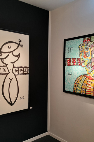 Au travers de ses œuvres, nous ressentons de vives réminiscences du cubisme de Picasso et Braque, une verve coloriste et narrative qui parfois nous évoque Robert Combas et surtout une monumentalité sculpturale de ses modèles proche des arts premiers.
