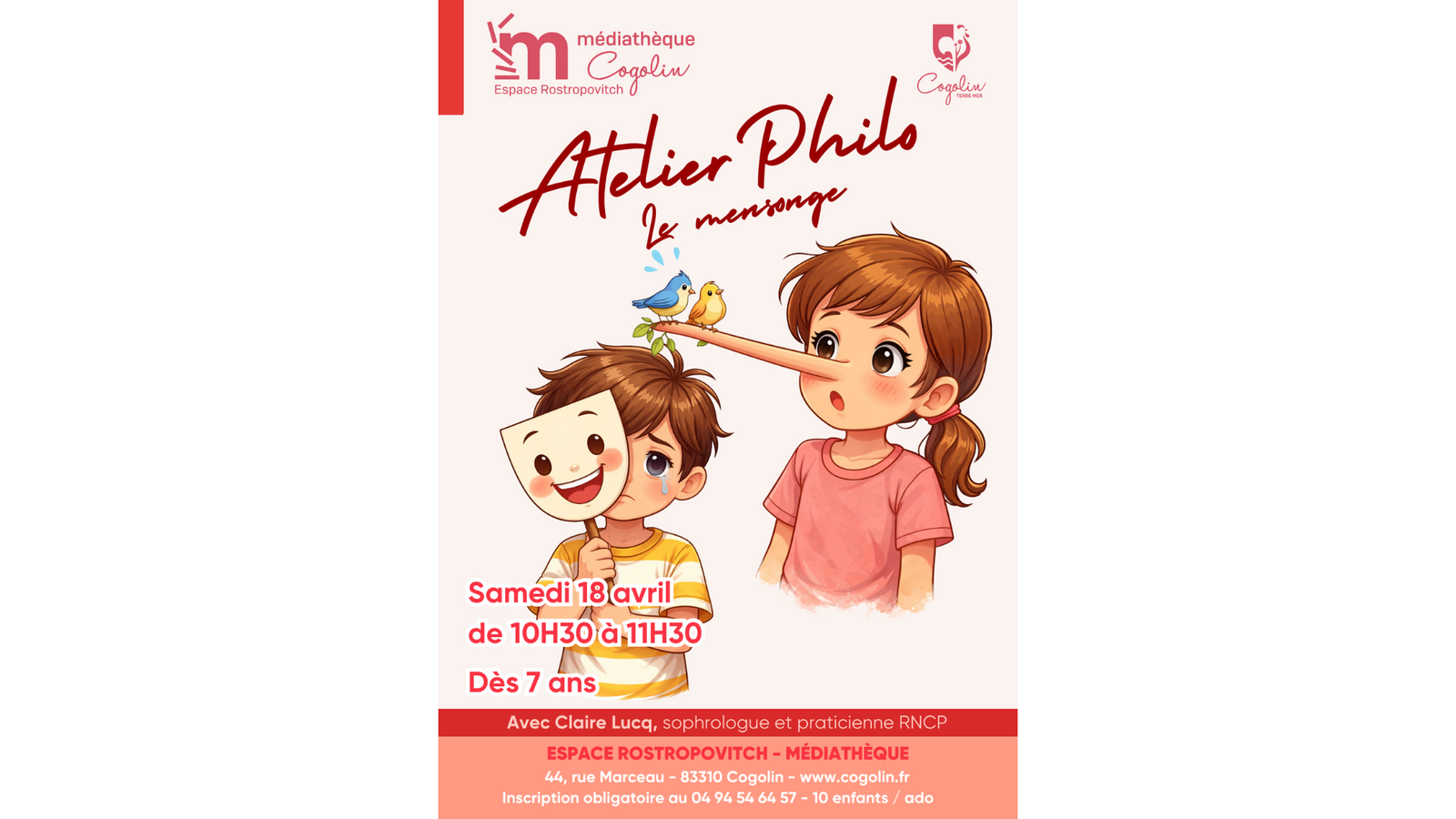 Un thème, un livre, une discussion ! Cet atelier philo invite les enfants dès 7 ans à réfléchir et échanger autour d’une idée, guidés par Claire Lucq, sophrologue et praticienne RNCP.