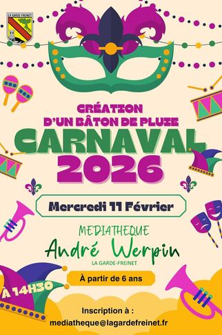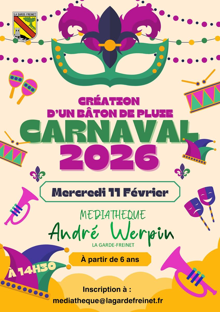 A l'occasion du Carnaval, la médiathèque André Werpin propose un atelier créatif pour les enfants à partir de 6 ans, dédié à la fabrication d'un bâton de pluie.