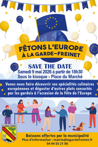 Venez nous faire découvrir vos spécialités culinaires européennes et déguster d'autres plats concoctés pas les gardois à l'occasion de la Fête de l'Europe.Boissons offertes par la municipalité.