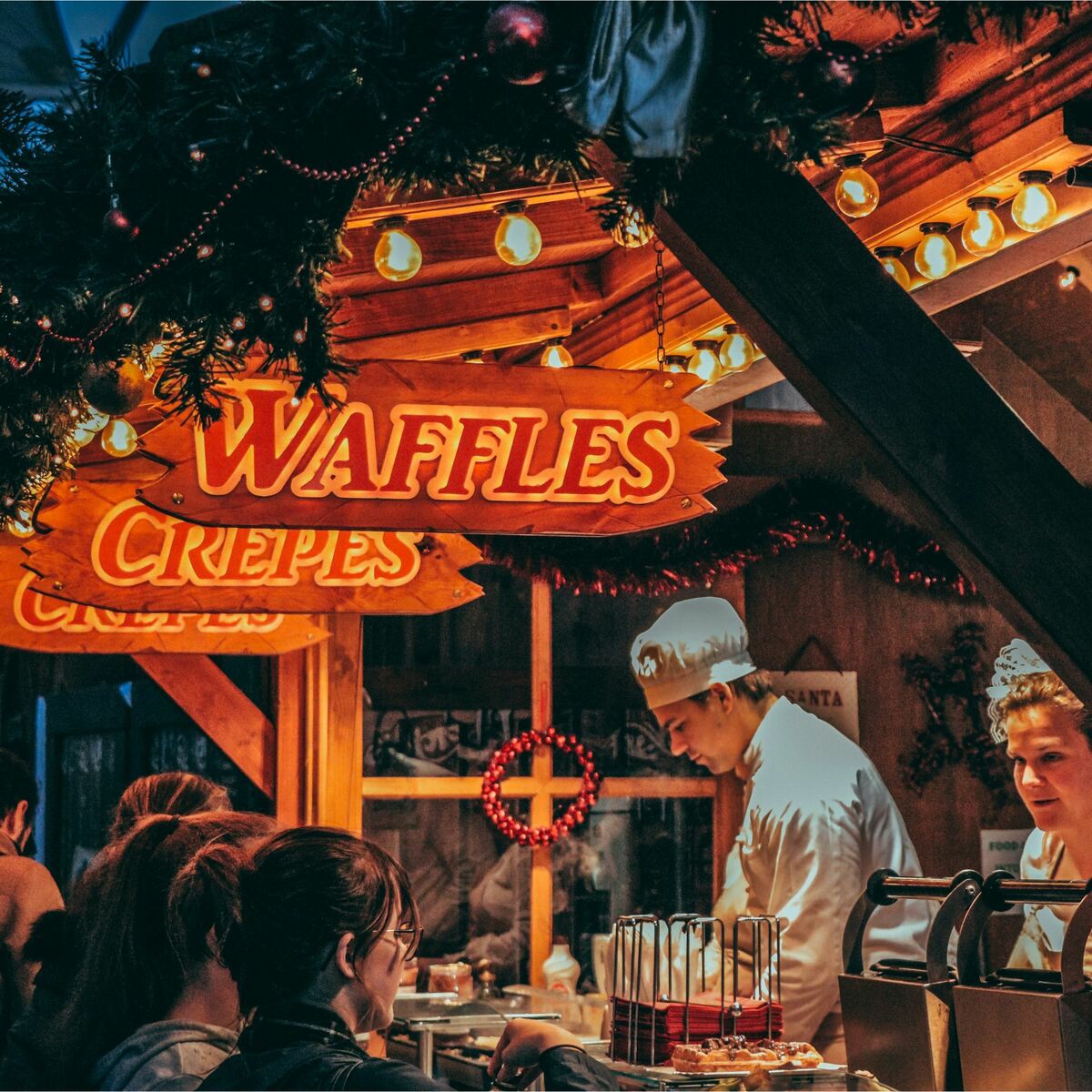 Laissez-vous tenter par les saveurs de l’hiver dans un décor sublime aux couleurs de Noël.Fromages fondus, gaufres liégeoises … chaque bouchée réchauffe le cœur dans un décor digne d’un conte de Noël.