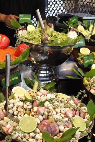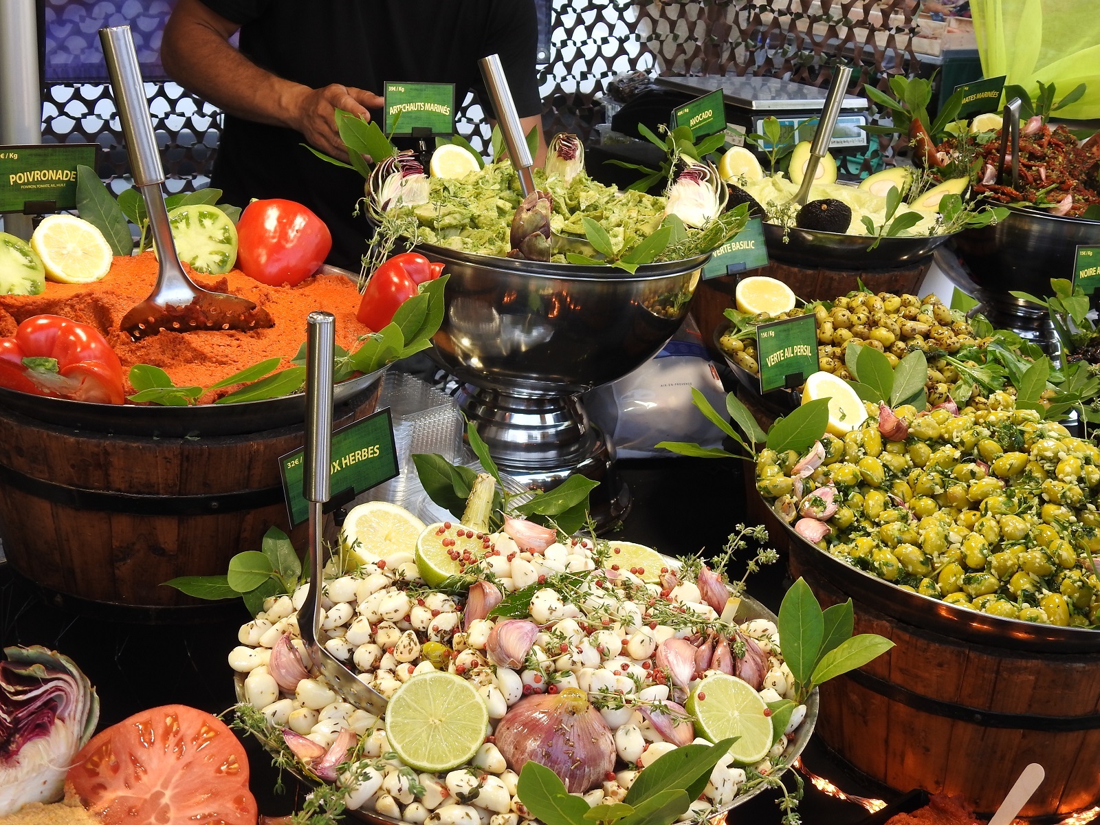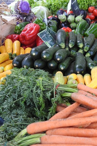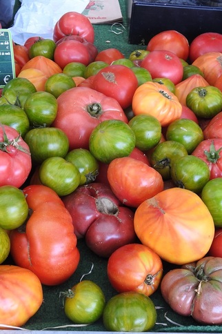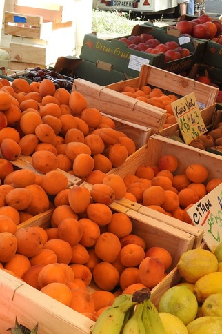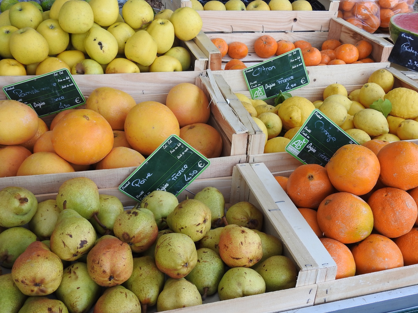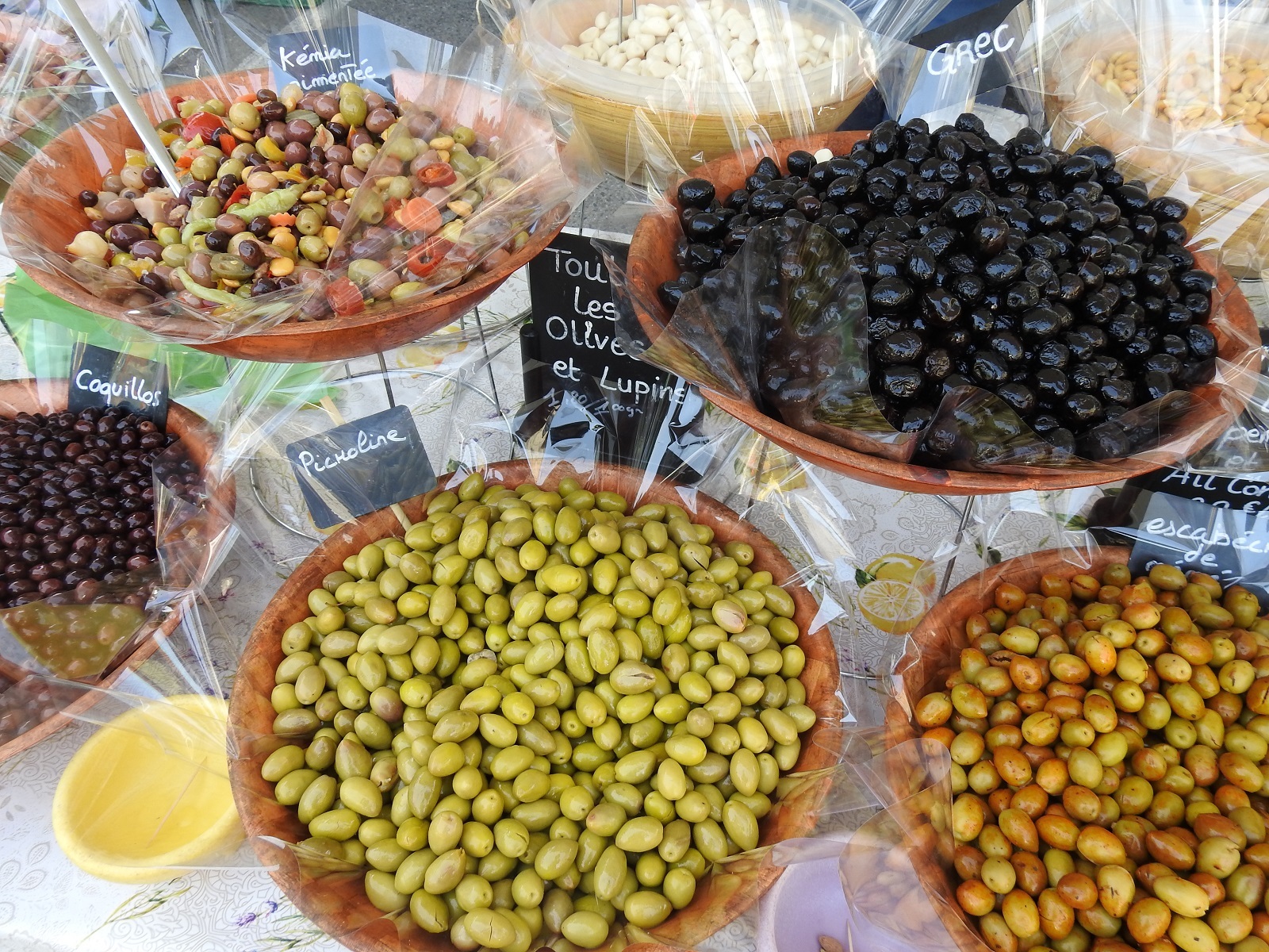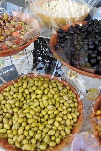 Un petit marché provençal au cœur du village, ambiance locale, avec vente de fruits et légumes, fromages, poissons, miel, huile d'olive, des nappes, des foutas, quelques vêtements ...