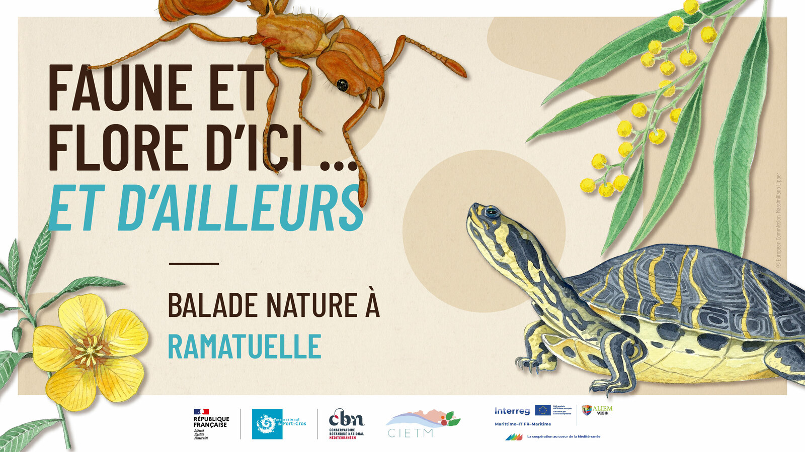 Cette balade botanique est animée par le collectif de la maison des guides du CIETM pour le compte du Conservatoire Botanique National Méditerranéen, en collaboration avec le Parc-National de Port-Cros. Animée de façon ludique et portée sur la découverte, elle participe à la sensibilisation du public aux enjeux majeurs des espèces exotiques envahissantes.