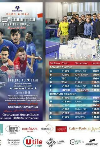 Point infos : 16e tournoi national de tennis de table à Saint-Tropez, qui se déroulera le samedi 17 et dimanche 18 janvier 2026, nous pouvons annoncer d’ores et déjà la venue d’un grand joueur français :