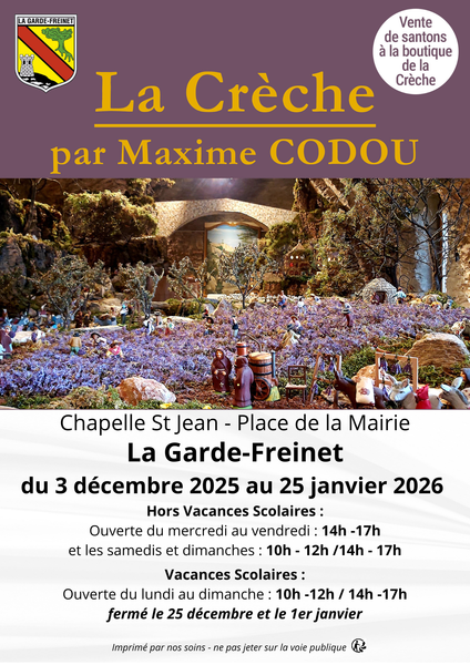 La chapelle Saint Jean de la Garde Freinet accueillera la grande crèche Provençale créée par Maxime Codou et les bénévoles de l'association les Amis de la Crèche.